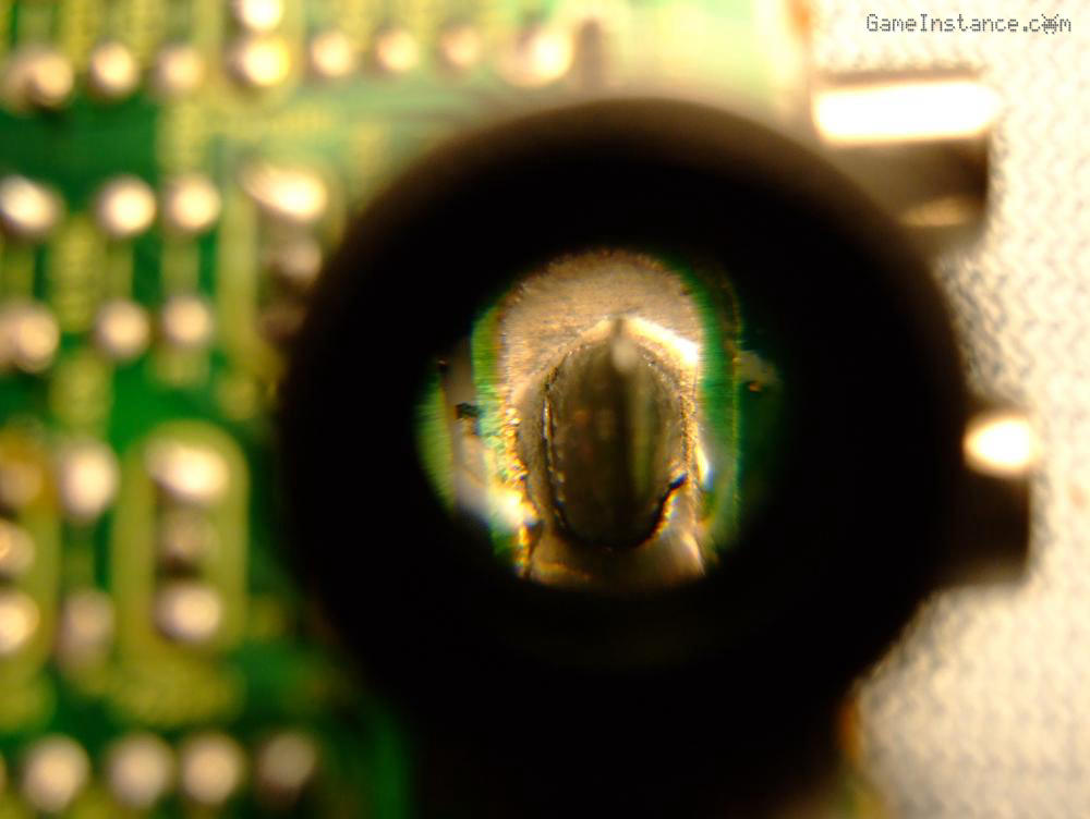 No doubt the solder mix was the main problem but the case wobbliness and handling the RCA jacks on the back panel have contributed to the connector coming loose from the PCB. The cold joint isn't quite visible with the naked eye, so here's a close-up.