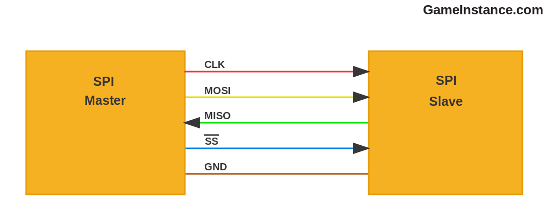 Although not used in the above example, the SPI provides full duplex communication. That means data bits can travel both ways at the same time.